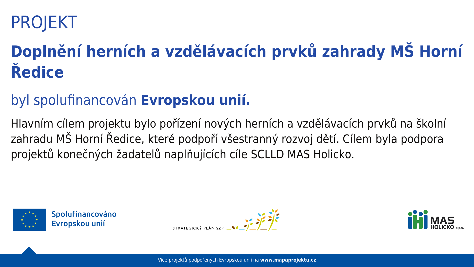 • Dotační program - Doplnění herních a vzdělávacích prvků zahrady MŠ Horní Ředice
